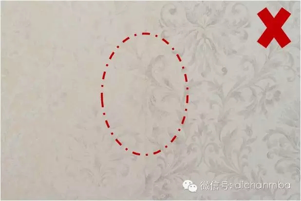 距離墻面1.5M處觀察壁紙,有嚴(yán)重色差,不合格。