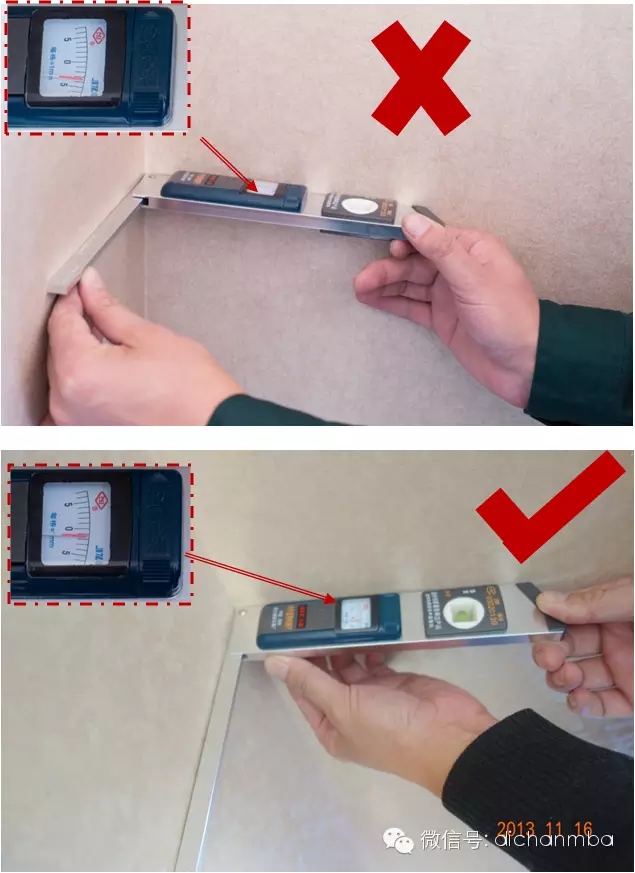 用2M尺及塞尺檢查,墻面垂直度誤差≤2MM,為合格。