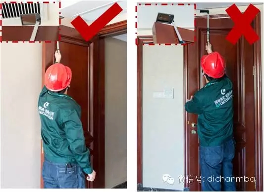 檢測(cè)鏡查看門扇上口是否刷漆,透氣孔設(shè)置是否合理。