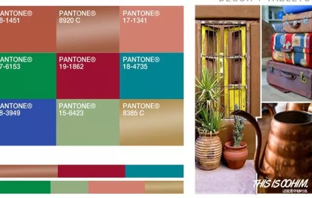 2017年最新色彩趨勢估測,軟裝設計調(diào)色方案中可以混合搭配46種色調(diào)。并且為了增加設計的柔和感,多種色彩可供選擇,包括暖咖色、茶褐色、赭色、杜威藍和高級灰等。如果把這一類色彩與現(xiàn)代元素搭配起來,視覺效果會更強。