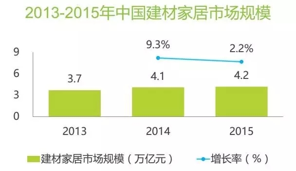 2015年我國建材家居市場規(guī)模達4.2萬億元。該行業(yè)互聯(lián)網(wǎng)滲透率僅為4.0%,有較高的增長空間,預計互聯(lián)網(wǎng)家裝會繼續(xù)保持增長態(tài)勢。