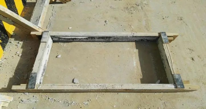 模具采用木方進行制作,預制蓋板規(guī)格1.2m*1.2m*0.15m(長*寬*高),模具總寬度尺寸比后澆帶寬度寬40cm,長度為1.2m。模具高度15cm。模具制作完成后可周轉(zhuǎn)使用,在使用過程中需注意對模具的成品保護。