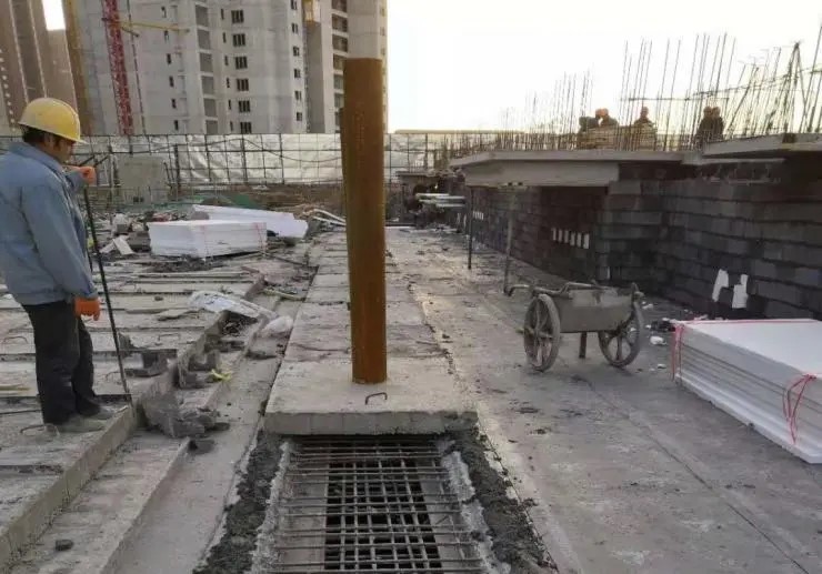 后澆帶達到主體封頂后14天,開始澆筑后澆帶,采用自密實微膨脹混凝土通過鑄鐵管進行后澆帶澆筑。每根立管混泥土澆筑至與回填土標高一致,混凝土達到強度后,將立管上部割除,采用SBS卷材進行立管上部封堵防水處理。