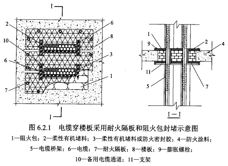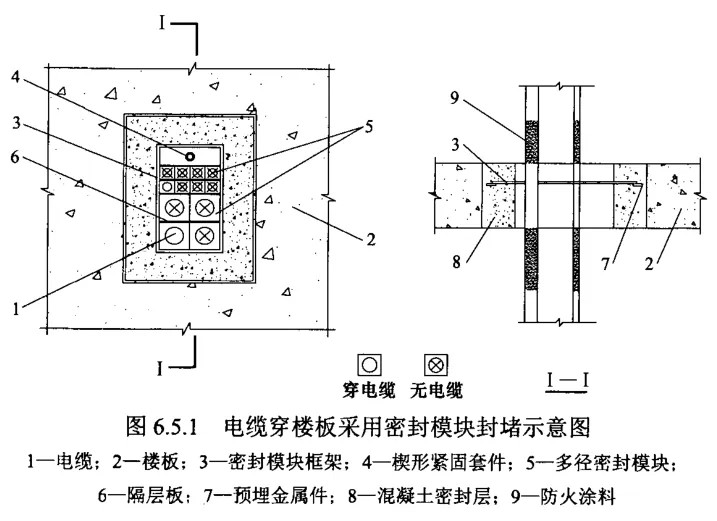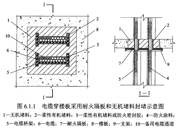 依據(jù)DL/T 5707《電力工程電纜防火封堵施工工藝導(dǎo)則》,電纜穿樓板防火封堵可采用五種方法:①耐火隔板和無機堵料封堵、②耐火隔板和阻火包封堵、③防火復(fù)合板封堵、④防火涂層板封堵、⑤密封模塊封堵,封堵原理和具體做法總結(jié)如下,以供大家在工程中結(jié)合規(guī)范參考實施。