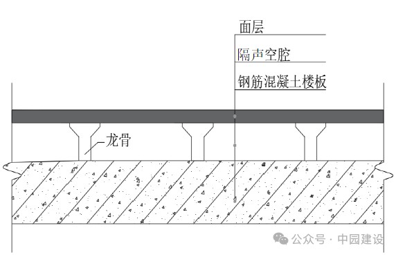 具體而言,浮筑樓板涵蓋了兩種主要的構造做法:一種是隔聲空腔浮筑樓板,另一種則是隔聲墊層浮筑樓板。對于隔聲空腔浮筑樓板,其構造特點在于利用龍骨進行支撐,從而在面層與基層之間形成一個隔聲空腔;而對于隔聲墊層浮筑樓板,則是通過鋪設具有彈性的隔音減震材料,來形成一層有效的隔聲墊層。